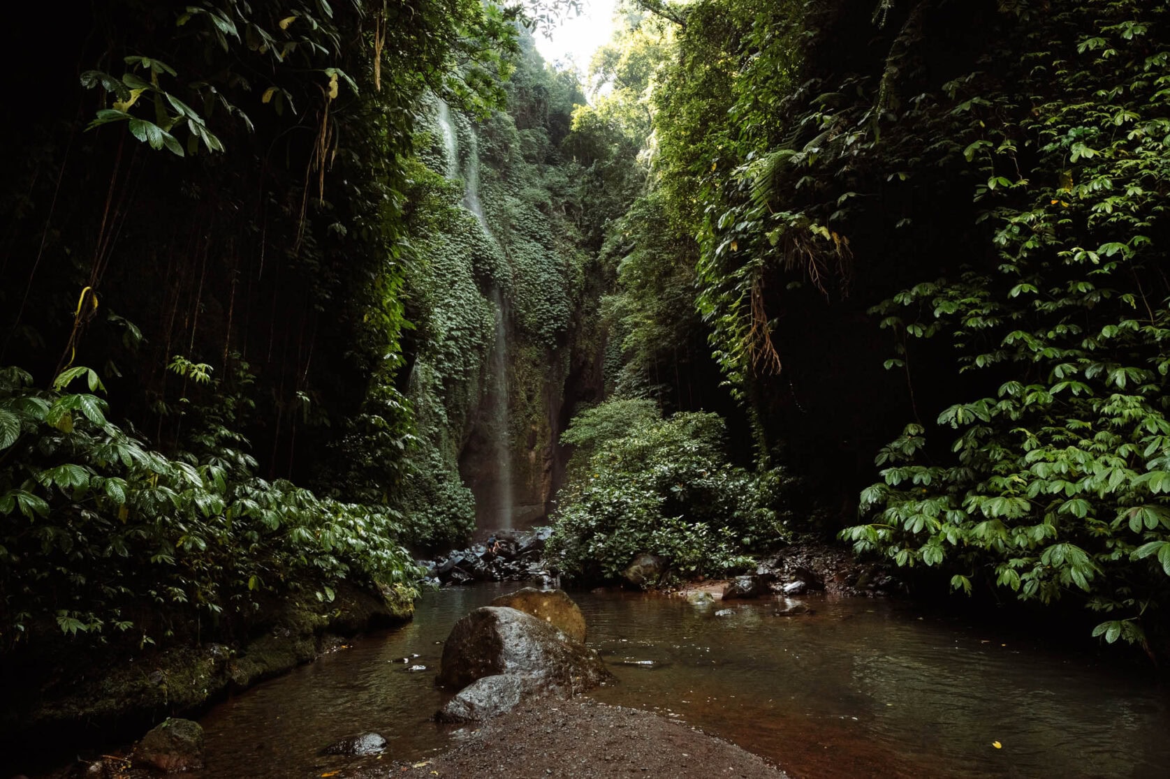 Zodra je entree hebt betaald en je aan de wandeling bent begonnen, loop je meteen tussen de weelderige groene jungle met grote exotische planten en bomen. Het pad varieert van natuurlijke- en aangelegde trappen en loopt de vallei in. Terwijl je dit pad in een klein half uurtje naar beneden loopt, krijg je af en toe al even een glimp van de imposante Sekumpul Waterfall te zien. Wanneer je eenmaal aangekomen bent bij de rivier, is de natuur adembenemend. Een canyon van hoge, met groen begroeide rotswanden torent boven je uit. Op verschillende plekken zie je kleine watervalletjes, dunne sijpelende straaltjes en druppels die zich vasthouden aan de groene bladeren.