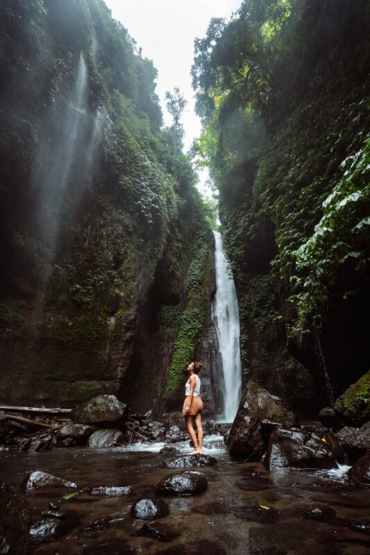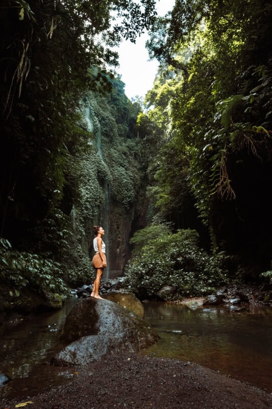 Zodra je entree hebt betaald en je aan de wandeling bent begonnen, loop je meteen tussen de weelderige groene jungle met grote exotische planten en bomen. Het pad varieert van natuurlijke- en aangelegde trappen en loopt de vallei in. Terwijl je dit pad in een klein half uurtje naar beneden loopt, krijg je af en toe al even een glimp van de imposante Sekumpul Waterfall te zien. Wanneer je eenmaal aangekomen bent bij de rivier, is de natuur adembenemend. Een canyon van hoge, met groen begroeide rotswanden torent boven je uit. Op verschillende plekken zie je kleine watervalletjes, dunne sijpelende straaltjes en druppels die zich vasthouden aan de groene bladeren.