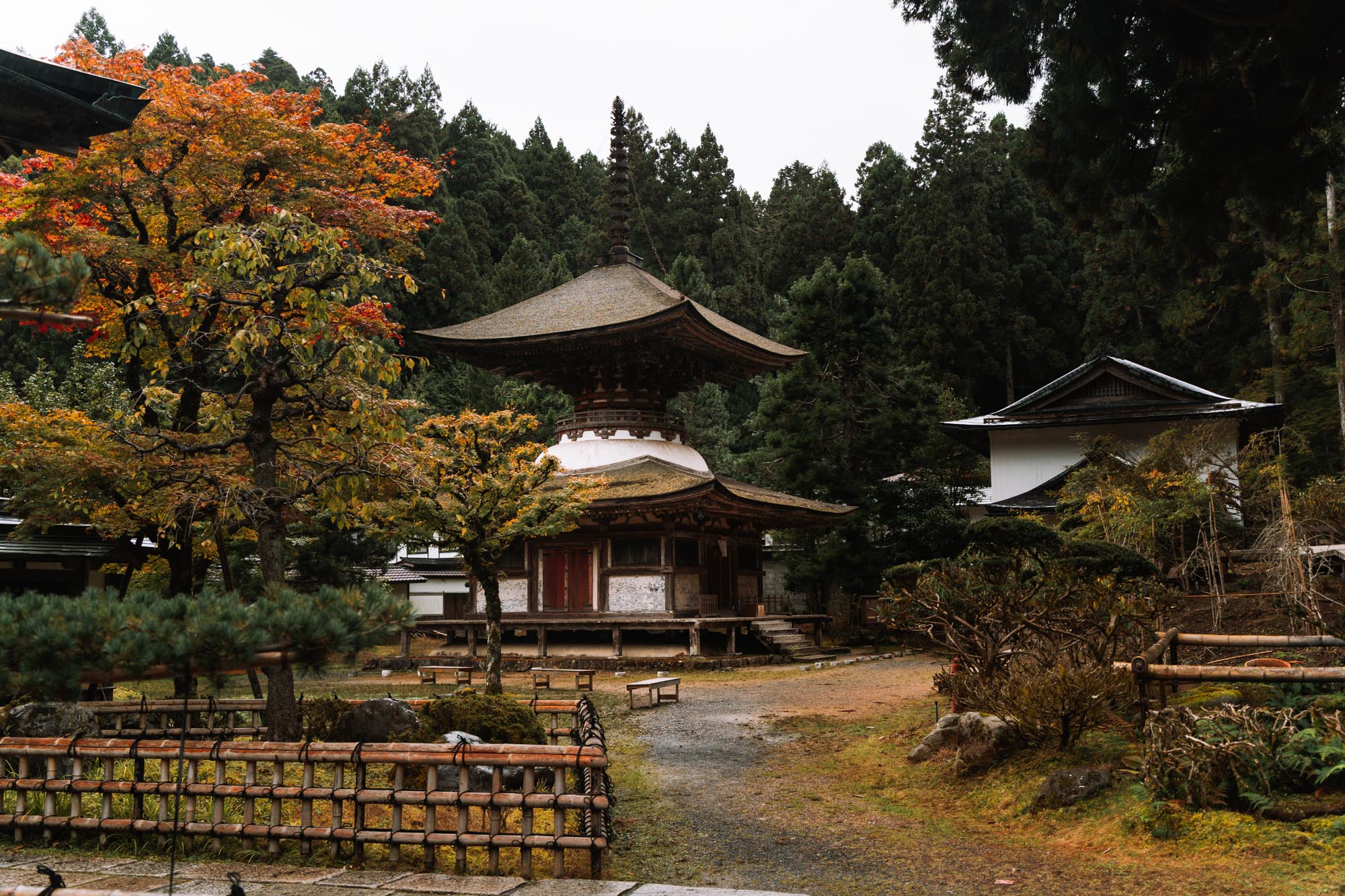 Kongล Sanmai-in is een andere sfeervolle tempel in Koyasan, en de oudste originele tempel van het dorp. Hoewel hij vaak minder bekend is dan de bovengenoemde plekken, is dit wel een tempel waar de rust en spiritualiteit goed voelbaar zijn. De drievoudige pagode heeft een unieke bouwstijl die afwijkt van andere pagodes. Tegenwoordig kun je hier ook overnachten, maar voor een kleine entreeprijs kun je als bezoeker ook even langskomen om deze plek kort te ervaren.