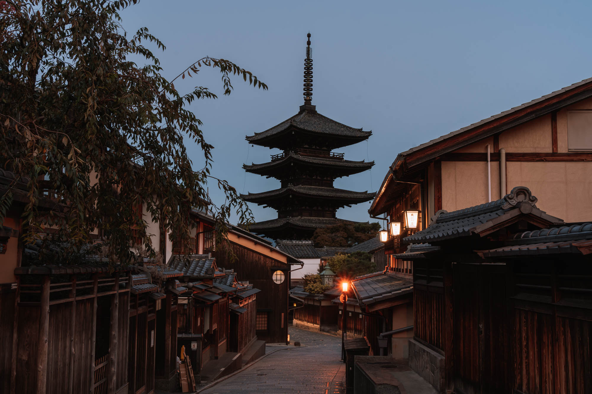 Yasaka Pagoda (officieel Hลkan-ji Tempel) is een van de meest gefotografeerde plekken van Kyoto. De vijf verdiepingen tellende pagode torent boven de traditionele houten huizen van de wijk Higashiyama uit. Het vormt een iconisch beeld dat perfect het karakter van Kyoto laat zien. Vooral vroeg in de ochtend, wanneer de straatjes nog rustig zijn en de zon opkomt, hangt hier een bijzondere sfeer.