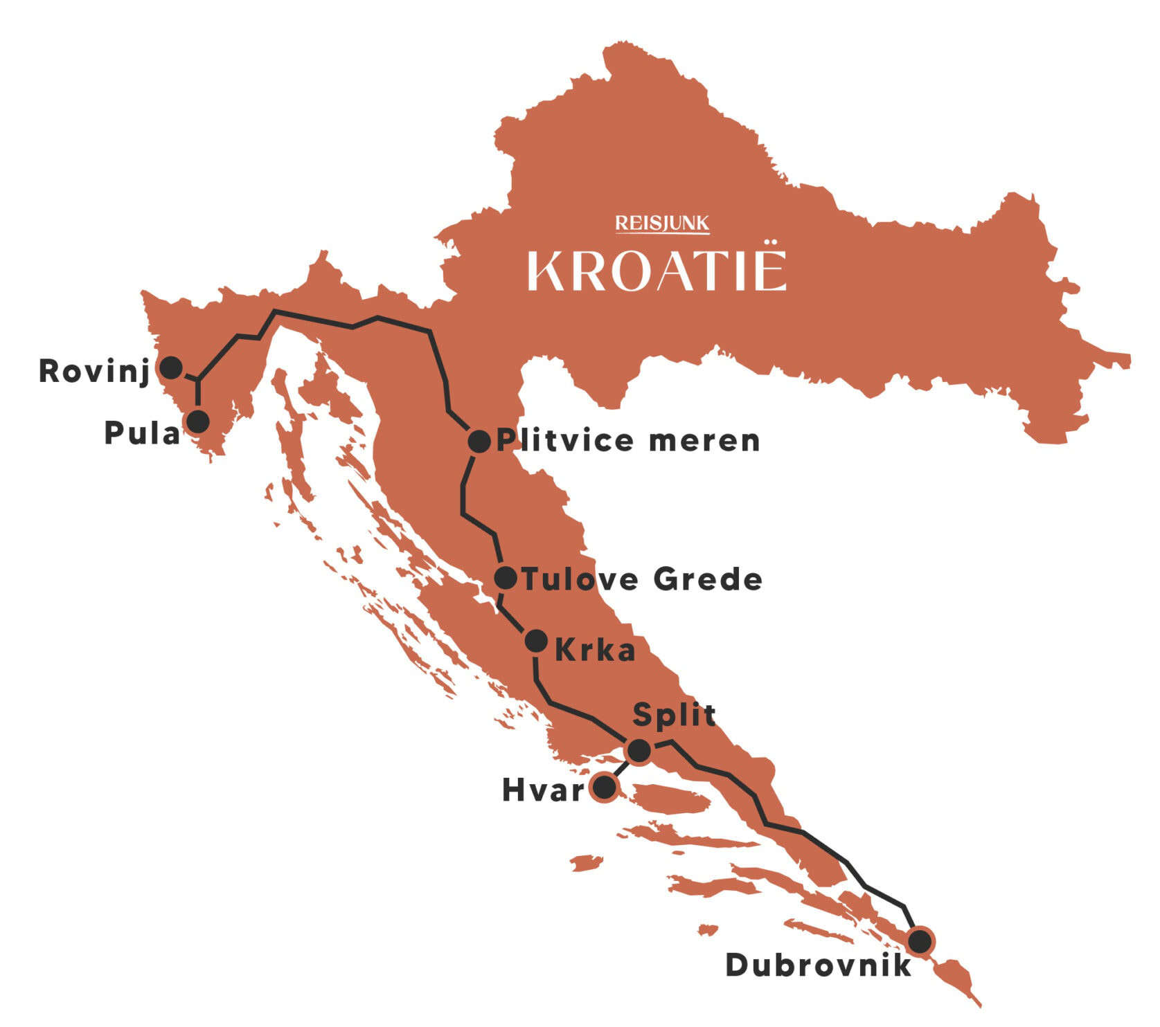Wij raden je aan om minimaal 17 dagen uit te trekken voor deze reisroute door Kroatië. Daarmee heb je overal genoeg tijd om de leukste dingen mee te pakken zonder te haasten. Doe je het liever wat rustiger aan dan zijn hier en daar wat extra dagen natuurlijk ook geen straf. Heb je minder tijd dan kan je de route inkorten door op sommige plekken minder lang te verblijven of misschien wel helemaal over te slaan. Hieronder lees je over alle plekken die je bezoekt op deze route. Daarnaast hebben we over ieder plek een los artikel geschreven met tips voor de leukste dingen om er te doen, goede restaurants en fijne adresjes om te verblijven.