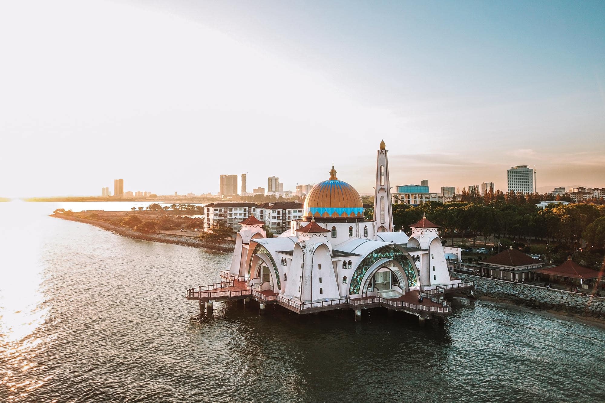 Bekijk de zonsondergang bij Melaka Straits Mosque