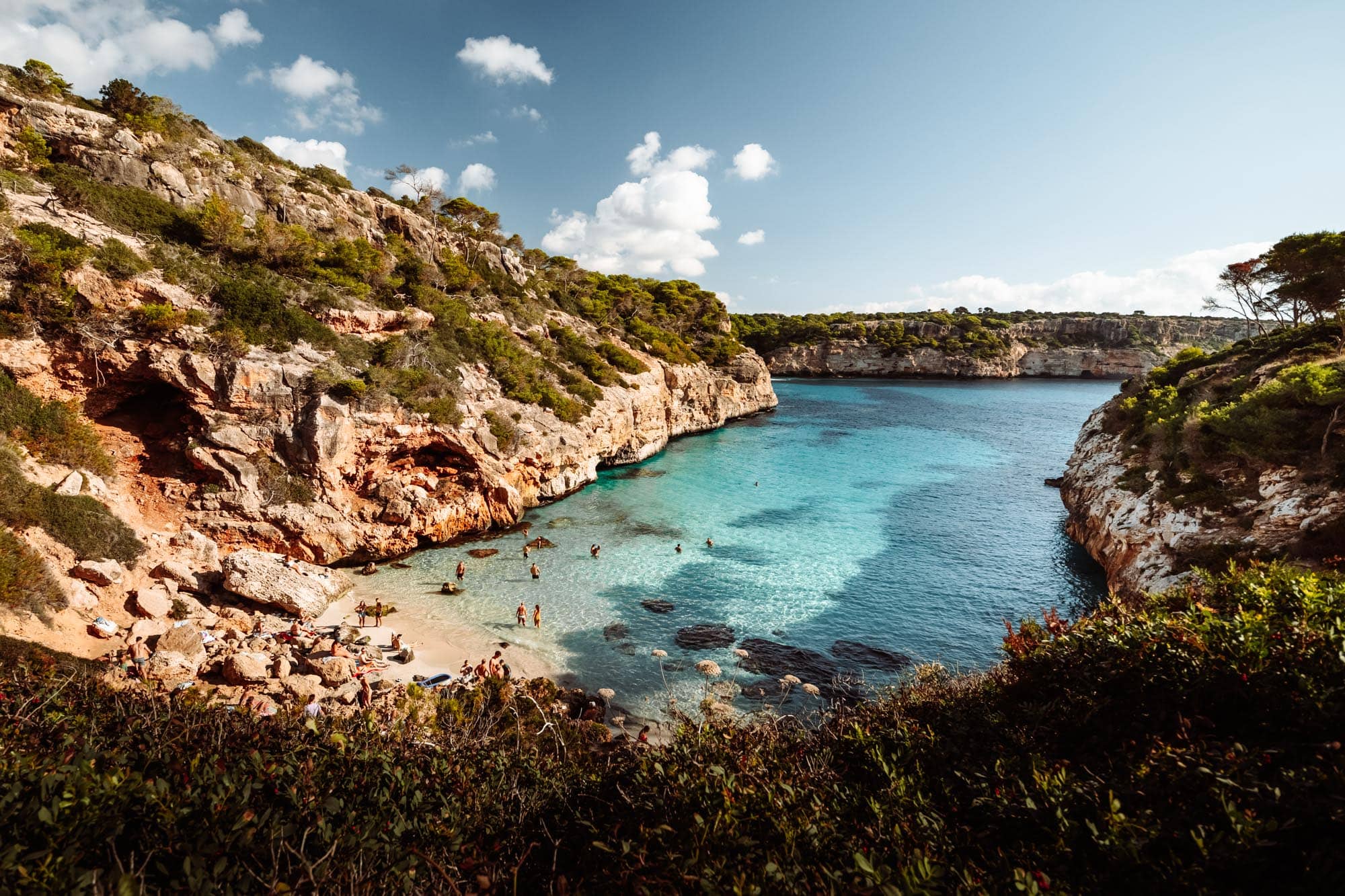 Cala Pi is een bekend strand op een klein uur rijden vanaf de hoofdstad Palma de Mallorca en wordt ook wel gezien als het mooiste strand van het eiland. Het prachtige blauwe water is omringd door rotsen en authentieke huisjes. Cala Pi dankt zijn naam โ€˜Piโ€™ aan de pijnbomen die het strand omringen. Via de trap naar beneden sta je binnen enkele minuten met je voeten in het fijne zand. Koop van tevoren in het dorp wat lekkers want op het strand zijn geen voorzieningen.