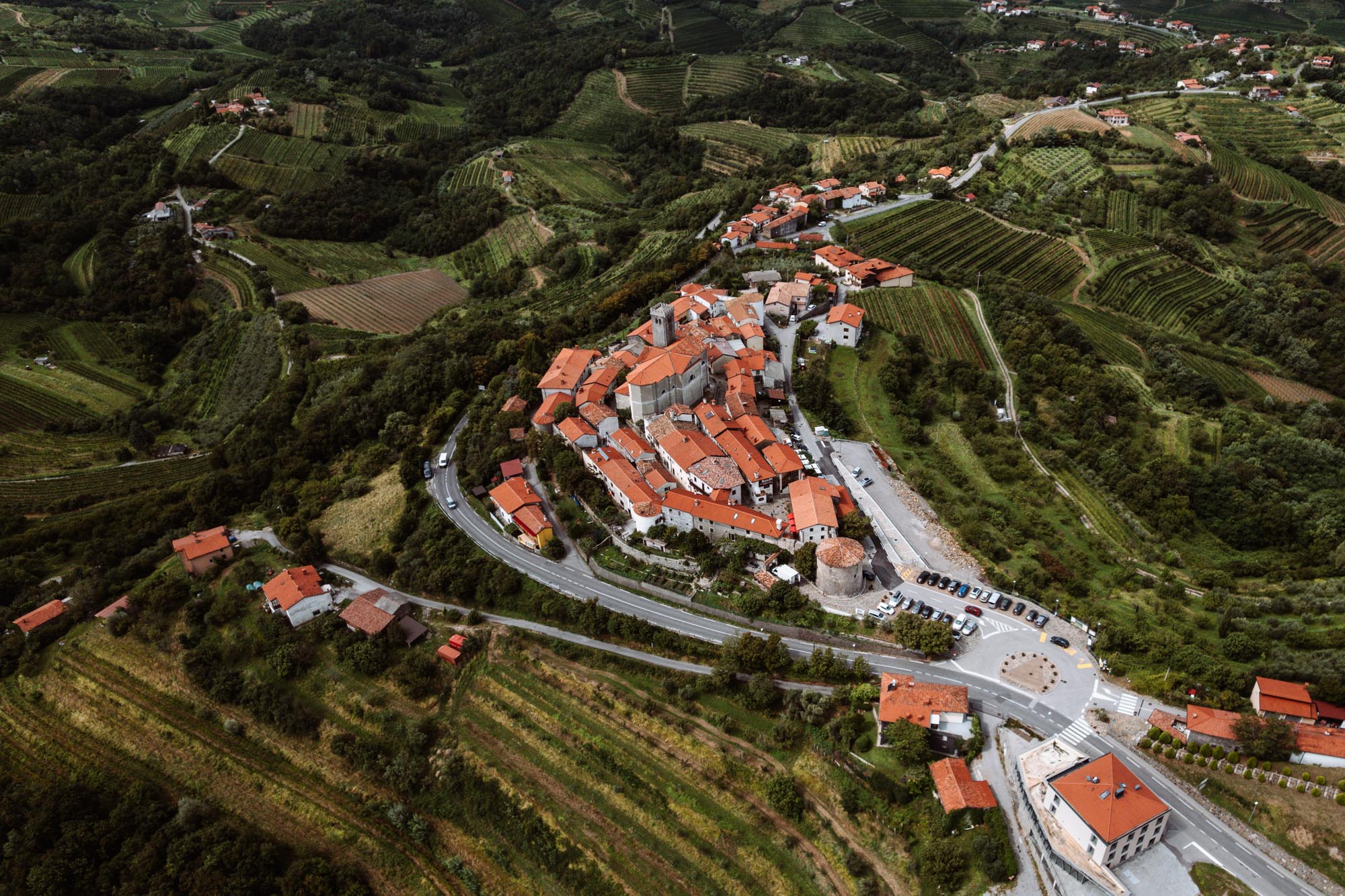 Zodra je de Brda-regio binnenrijdt, merk je dat het landschap compleet verandert. Waar je elders in Slovenië bergen en bossen ziet, vind je hier uitgestrekte wijnvelden die zich over de heuvels uitstrekken. Via kronkelende wegen rijd je van het ene middeleeuwse dorp naar het andere. De routes zijn smal en soms hobbelig, dus rustig rijden is aan te raden. Gelukkig zijn er onderweg genoeg uitzichtpunten waar je even kunt stoppen. Vanaf de hogere heuvels kijk je uit over de wijngaarden, dorpjes en het buurland Italië.
