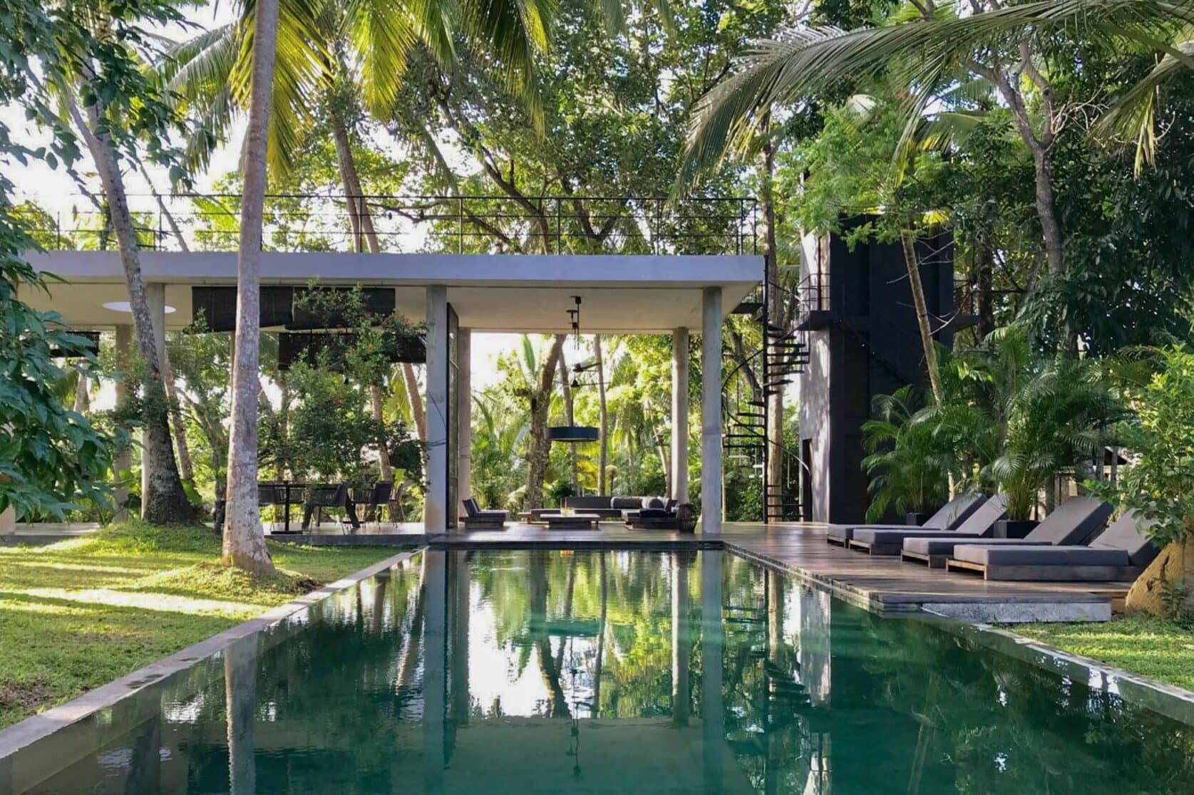 Of je nou van een moderne inrichting houdt of niet: in contrast met de ongereptheid van de jungle krijgt elke betonnen constructie midden in het groen een bijzondere aanblik. En dan is het verblijf van Kaju Green Eco Lodges niet eens het eerste beste betonnen gebouw: je kunt het gerust een designlodge noemen. En dat dus midden in een oase van tropische planten. Deze plek voelt een beetje aan als een luxe kuuroord in the middle of nowhere, compleet met een spectaculair zwembad, yogadeck en loungehoek met uitzicht op de tropen. Het zal je wellicht niet verrassen dat er aan dit hotel een iets hoger prijskaartje hangt dan je misschien gewend bent van Sri Lanka, maar deze bijzondere overnachting is dat het helemaal waard.