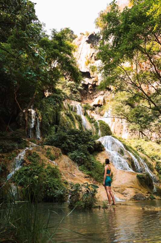 Nadat je over de geschiedenis van Kanchanaburi hebt geleerd, is het tijd om lekker te ontspannen en dat kan nergens beter dan bij de Erawan watervallen. Ik heb veel watervallen bezocht in mijn leven en de Erawan watervallen zijn absoluut de mooiste die ik ooit heb gezien.