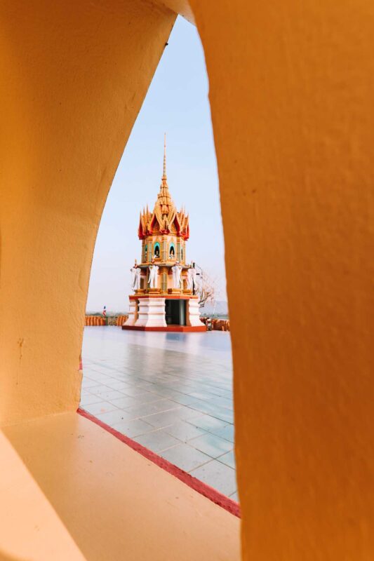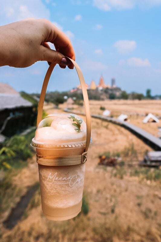 De kans is groot dat je trek hebt gekregen na het bezoek aan de tempels. Hoog tijd voor een verfrissende smoothie! Meena Cafe ligt vlakbij en dit is een hip tentje tussen de rijstvelden met prachtig uitzicht op de Tiger Cave Temple. Ze hebben een uitgebreide menukaart met de lekkerste smoothies, gebakjes maar ook hartige lekkernijen zoals mini pizza’s.