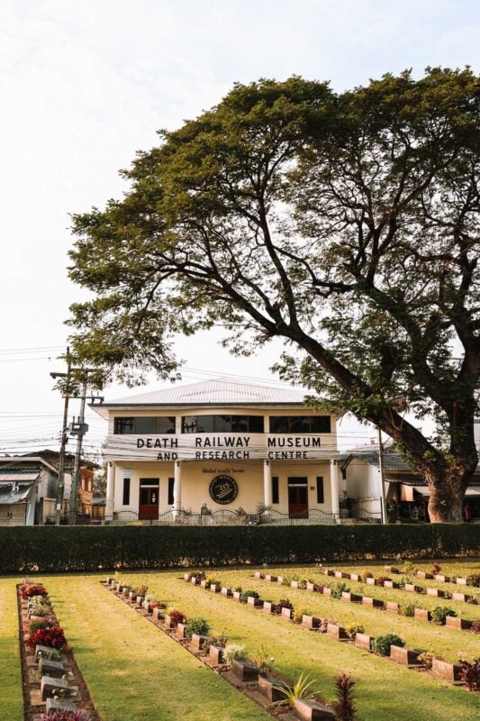 Het Death Railway Museum is een aanrader wanneer je nog meer wilt weten over wat er in de Tweede Wereldoorlog in Kanchanaburi heeft afgespeeld. Het is geen groot museum, maar wel interessant met veel goede informatie. Tegenover het Death Railway Museum is een oorlogsbegraafplaats waar ongeveer 7000 slachtoffers liggen begraven, waaronder bijna 2000 Nederlanders.