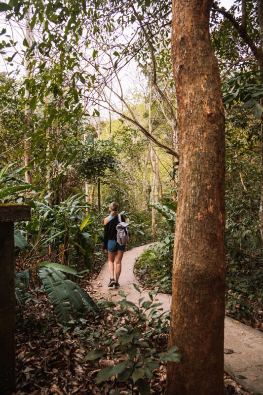 De ingang van het Cat Ba National Park is gemakkelijk te bereiken met de scooter. Vanaf Cat Ba Town is het een kleine 25 minuten rijden. De route alleen al is prachtig! Je kunt ook een taxi pakken als je geen scooter wilt rijden. Bij de ingang van het National Park koop je een entree ticket en kun je ervoor kiezen om zelfstandig door het park te wandelen of om samen met een gids te gaan wandelen. Een gids zal je meer vertellen over de flora en fauna van Cat Ba National Park. Wanneer je dit wilt, vraag dan wel expliciet om een Engelssprekende gids.